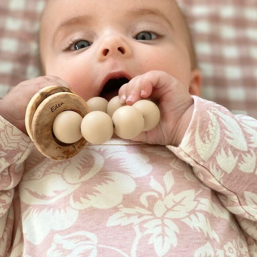 Personalise your FRIGG Dummies with our engraving options. Choose from 2 different fonts and mark your baby's journey through their growth. Personalised dummies also help identify your baby's dummy, reducing any mix-ups.